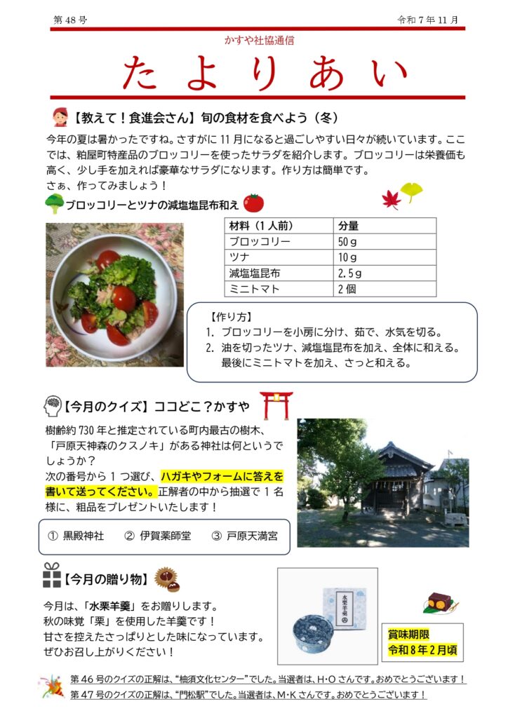 • かすや社協通信たよりあいNo.48を発行しました