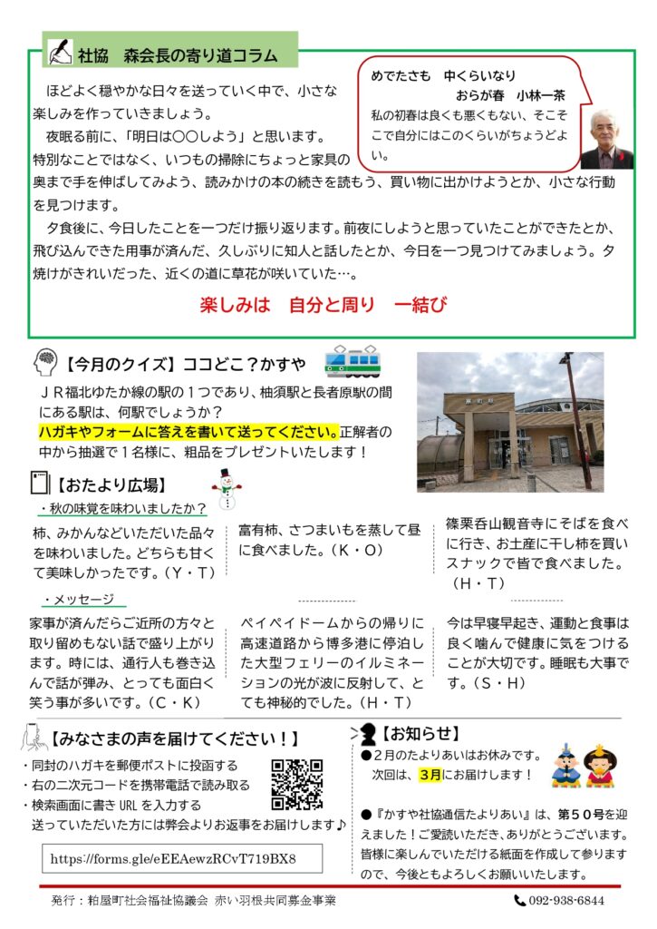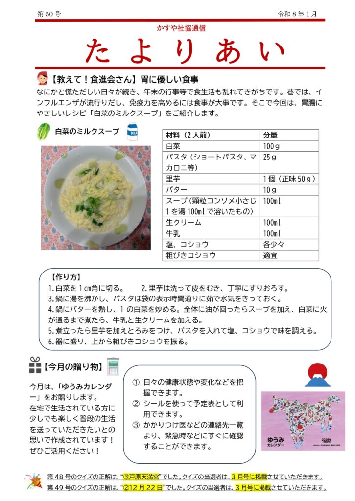 ホーム お知らせ かすや社協通信たよりあいNo.50を発行しました