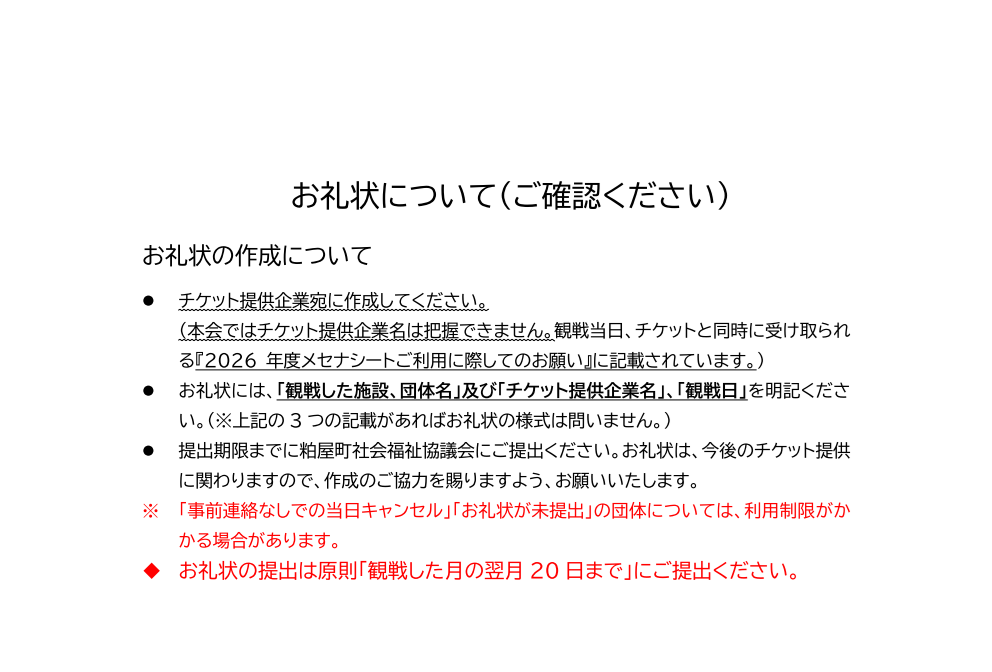 「お礼状について(別紙)」「注意点(別紙)」をご確認ください。